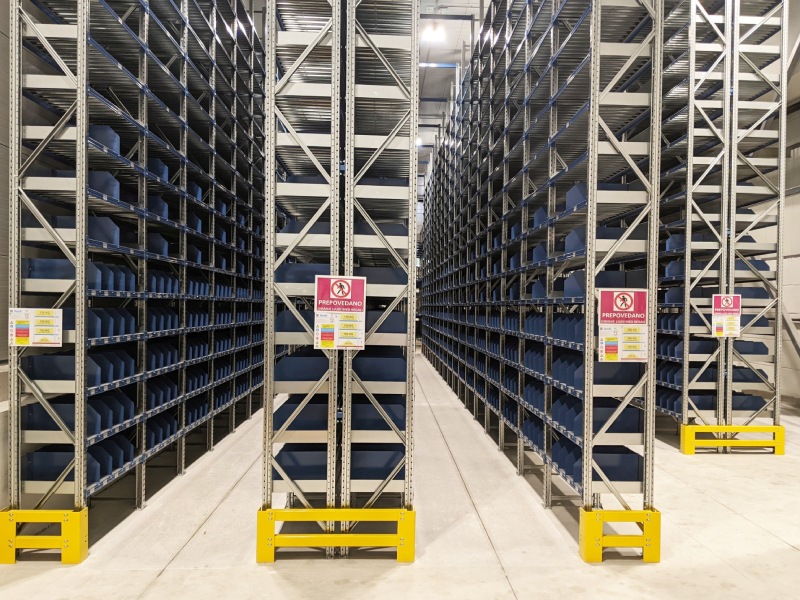The basic idea of shelf storage or carrying out manipulations is that there is only one product code at one shelf location, which subsequently means significantly greater possibilities for further improvement of logistics accuracy (fewer logistics complaints). When organizing work in the new part of the warehouse, the FIFO methodology is also used, which means that the product that is received first is also released first (taking into account the preset FIFO rules). Shelf picking is carried out in the new part of the warehouse with the help of three completely new EKS 310s vertical forklifts.