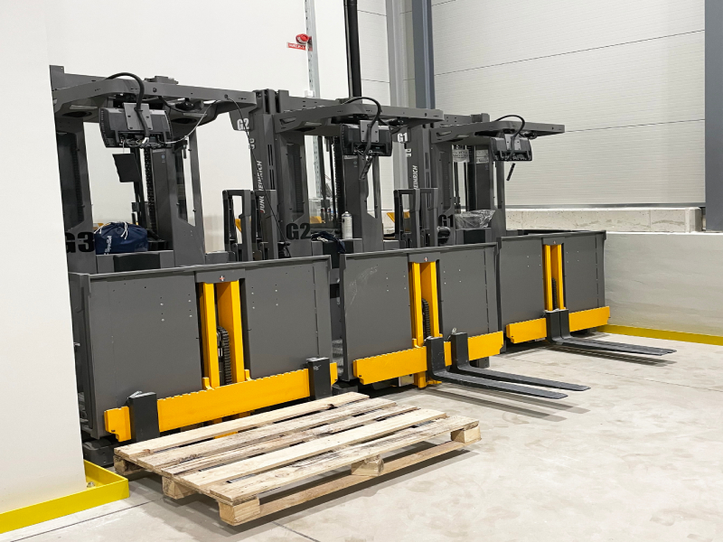 Due to the great emphasis on the safety of all employees, all three mentioned forklifts have a built-in system to prevent collisions with other forklifts or people. In the desire for a high degree of automation and a faster flow of products from and to the shelf storage location, we have designed the work process in such a way that each of the three mentioned forklifts has an implemented navigation system, which can increase the work flow in the warehouse by up to 25%.