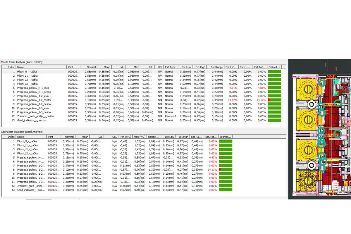 Monte Carlo simulations predict the percentage of good/bad final pieces based on thousands of virtual assemblies. Results empower us to take precise actions, adjusting component geometry or tolerance fields until positive outcomes are achieved. Results from Monte Carlo analyses provide critical insights into the statistical distribution of observed deviations, guiding us in optimizing designs, understanding impacts, and ensuring quality in serial production.